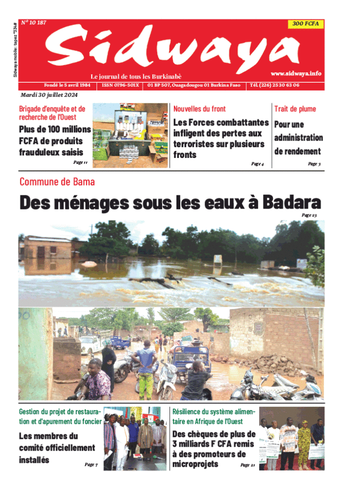SIDWAYA QUOTIDIEN Une Sidwaya du 30-7-2024 Par JK. Sidwaya - 29 juillet 2024 FacebookTwitterPinterestWhatsAppLinkedinE-mailImprimerTumblrTelegramViberNaver