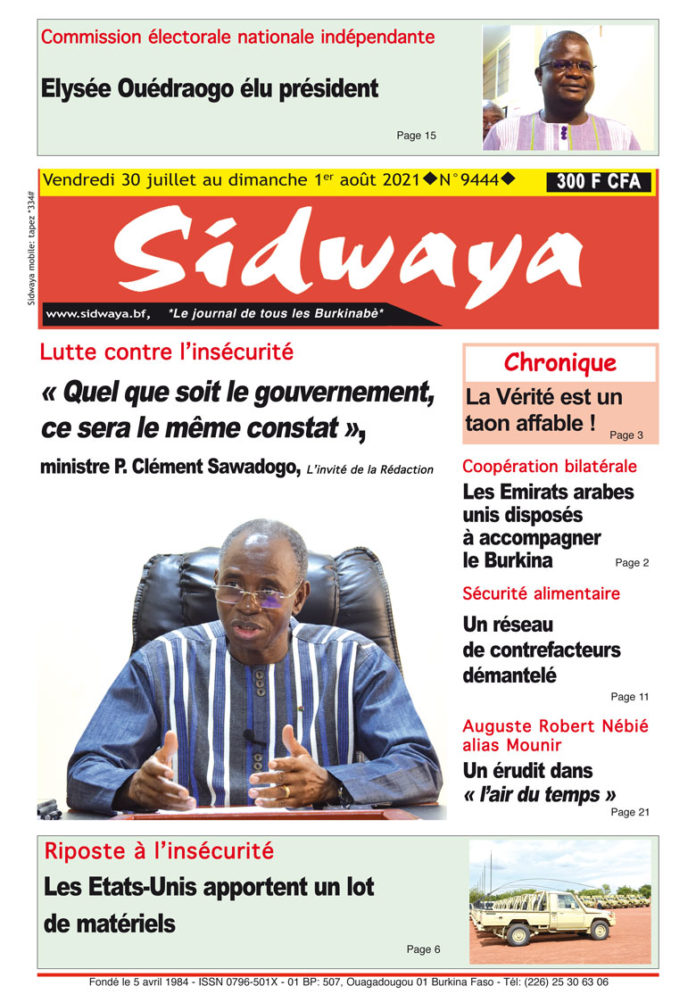 SIDWAYA QUOTIDIEN Une Sidwaya du 30 juillet au 1er août 2021 Par JK. Sidwaya - 29 juillet 2021 FacebookTwitterPinterestWhatsAppLinkedinE-mailImprimerTumblrTelegramViberNaver