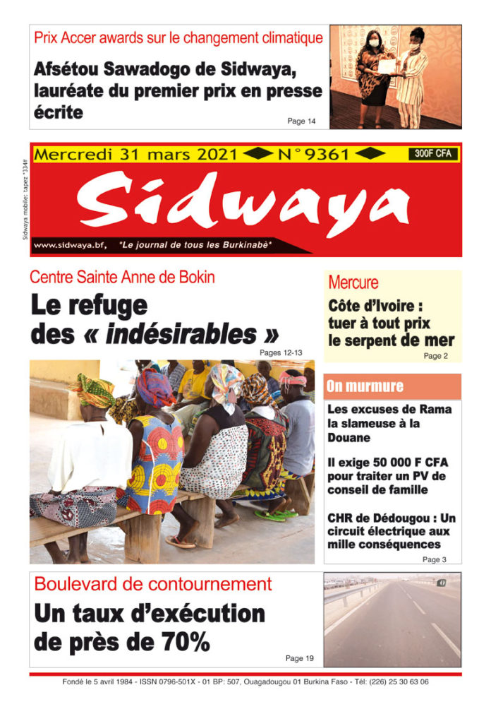 SIDWAYA QUOTIDIEN Une Sidwaya du 31-03-2021 Par JK. Sidwaya - 30 mars 2021 FacebookTwitterPinterestWhatsAppLinkedinE-mailImprimerTumblrTelegramViberNaver