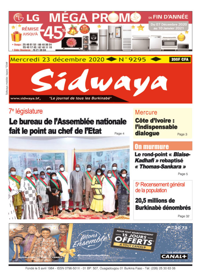 SIDWAYA QUOTIDIEN Une Sidwaya du mercredi 23 décembre 2020 Par JK. Sidwaya - 22 décembre 2020 FacebookTwitterPinterestWhatsAppLinkedinE-mailImprimerTumblrTelegramViberNaver