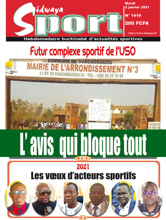 SIDWAYA SPORT Une Sidwaya Sport du 05 janvier 2021 Par JK. Sidwaya - 4 janvier 2021 FacebookTwitterPinterestWhatsAppLinkedinE-mailImprimerTumblrTelegramViberNaver