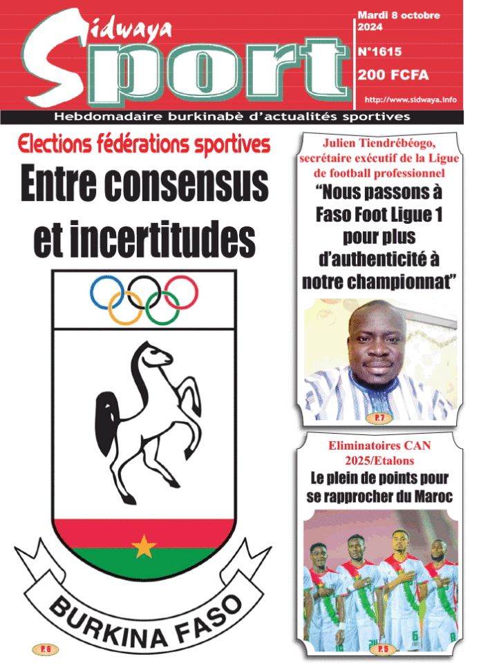 SIDWAYA SPORT Une Sidwaya Sport du 8-10-2024 Par JK. Sidwaya - 7 octobre 2024 FacebookTwitterPinterestWhatsAppLinkedinE-mailImprimerTumblrTelegramViberNaver