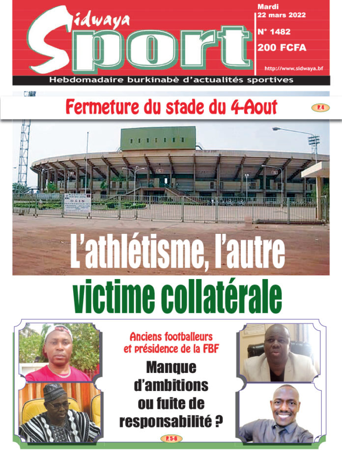 SIDWAYA SPORT Une Sport du 22/03/2022 Par JK. Sidwaya - 21 mars 2022 FacebookTwitterPinterestWhatsAppLinkedinE-mailImprimerTumblrTelegramViberNaver