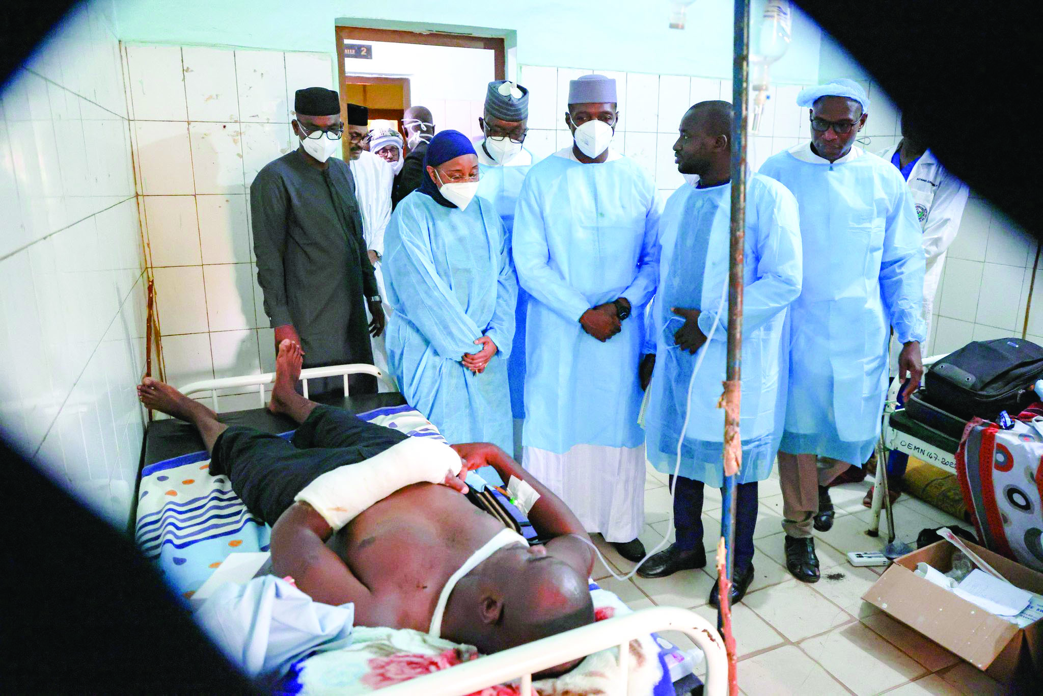 Accompagné du président du Conseil national de Transition, Malick Diaw, le chef du gouvernement s’est enquis de l’état de santé des patients en réanimation, en traumatologie et au pavillon D. A l’issue de cette visite, il a fermement condamné les actes de terrorisme lâches et barbares, avant de saluer le professionnalisme et l’engagement du corps médical. Il a précisé que la majorité des victimes ont pu regagner leur domicile, tandis que les cas graves restent pris en charge. Après avoir souhaité un prompt rétablissement aux blessés, il a affirmé qu’au-delà des soins, des abris temporaires seront offerts aux personnes dont les logements ont été affectés, en attendant des solutions définitives. Enfin, il a invité la population à plus de sérénité et au respect strict des consignes de sécurité.